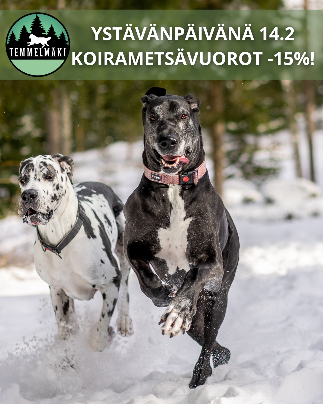 Ystävänpäivänä la 14.2 koirametsävuorot -15%!